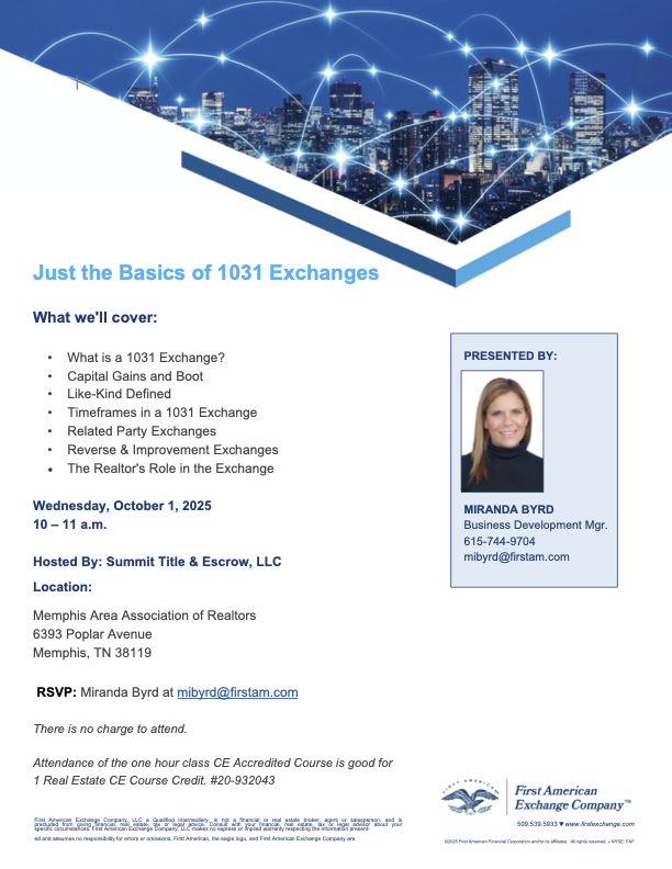 Register: Email Miranda Byrd at mibyrd@firstam.com to sign up
